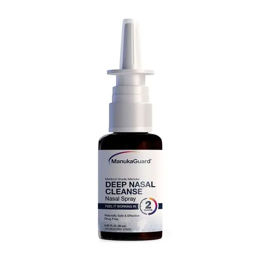 Fast-acting and easy to use, Deep Nasal Cleanse Nasal Spray helps the body cleanse the nasal passages of airborne irritants such as dust, pet dander, bed mites, and environmental matter we encounter in our day-to-day lives. The cleansing and hydrating power of Medical Grade Manuka Honey is captured in this formula, try it, you’ll never go back to saline sprays!